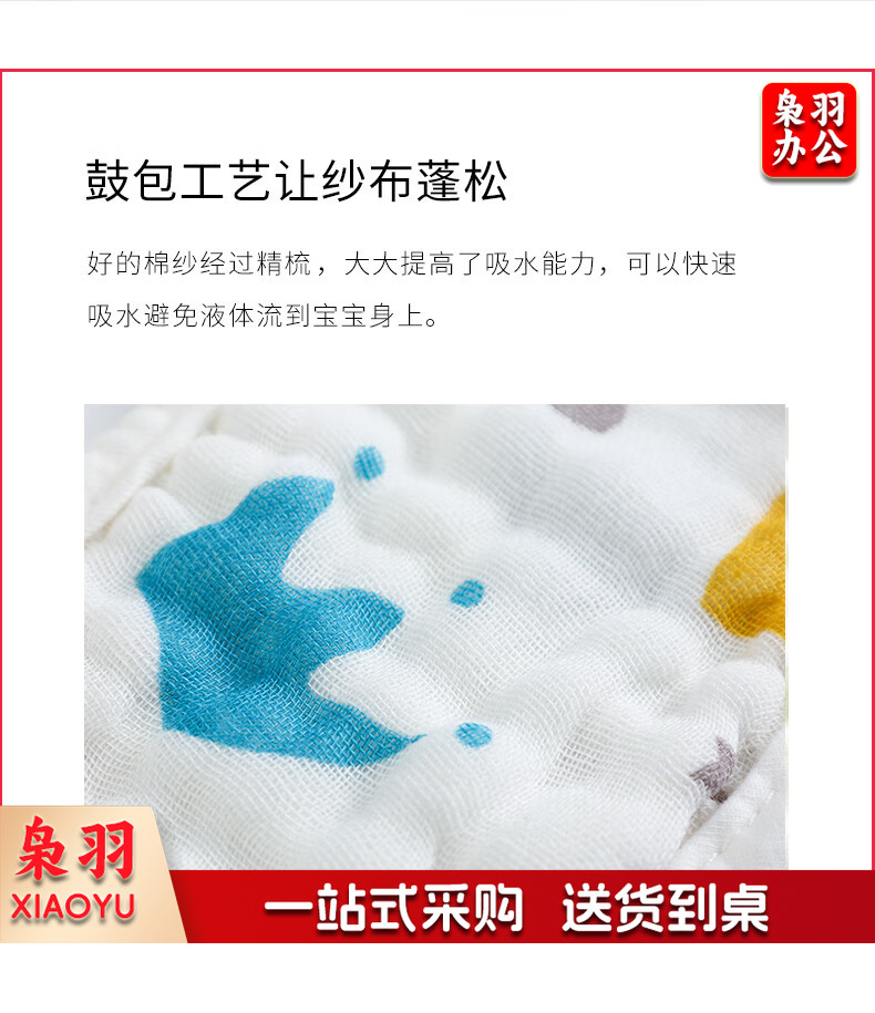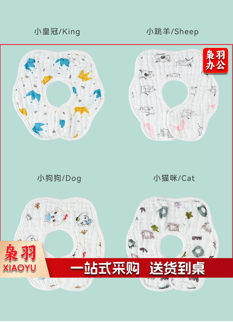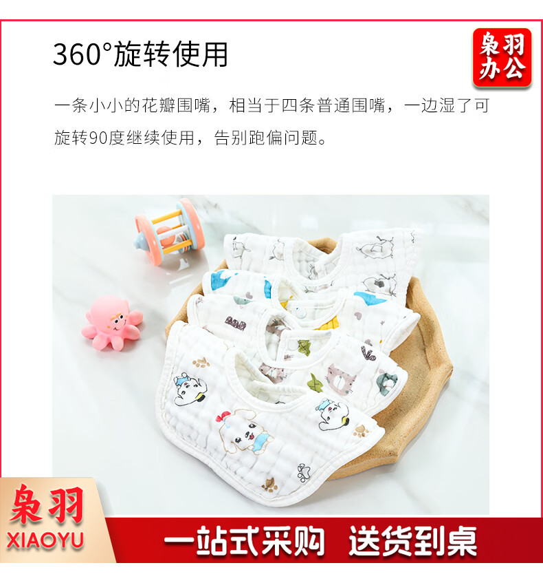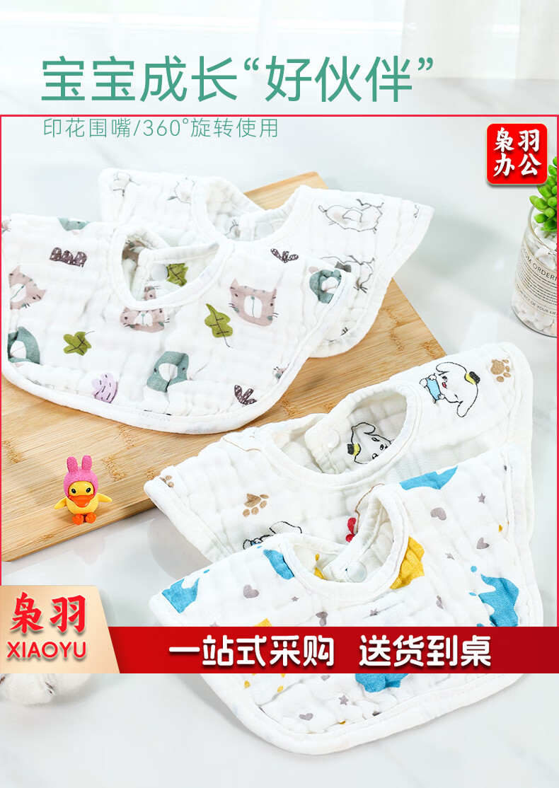 A类纯棉8层围嘴4条装婴儿纱布口水巾围兜宝宝360度旋转吸水饭兜