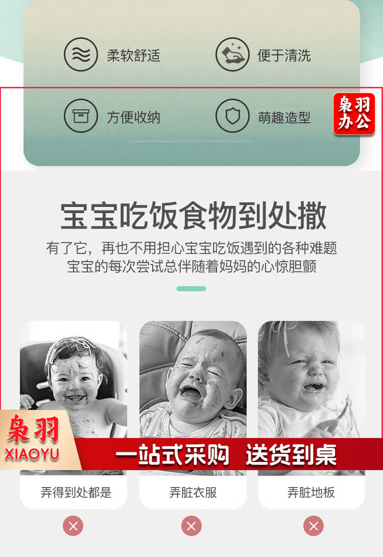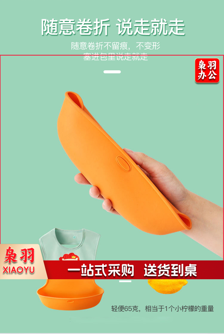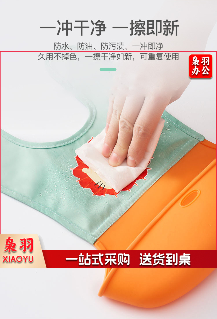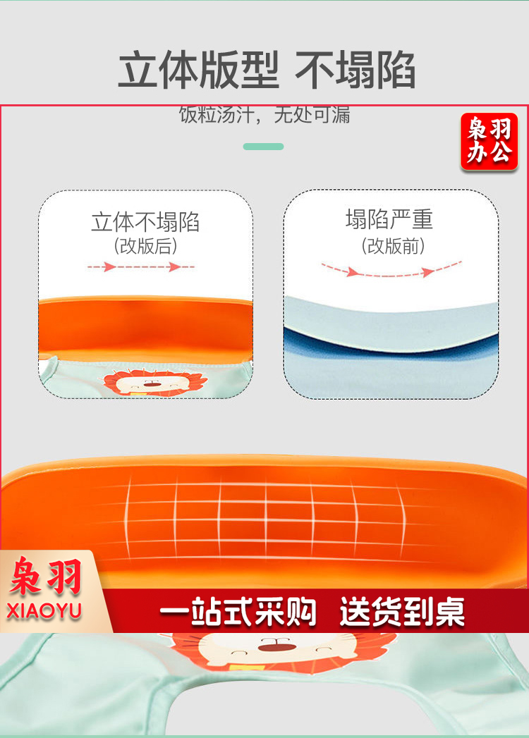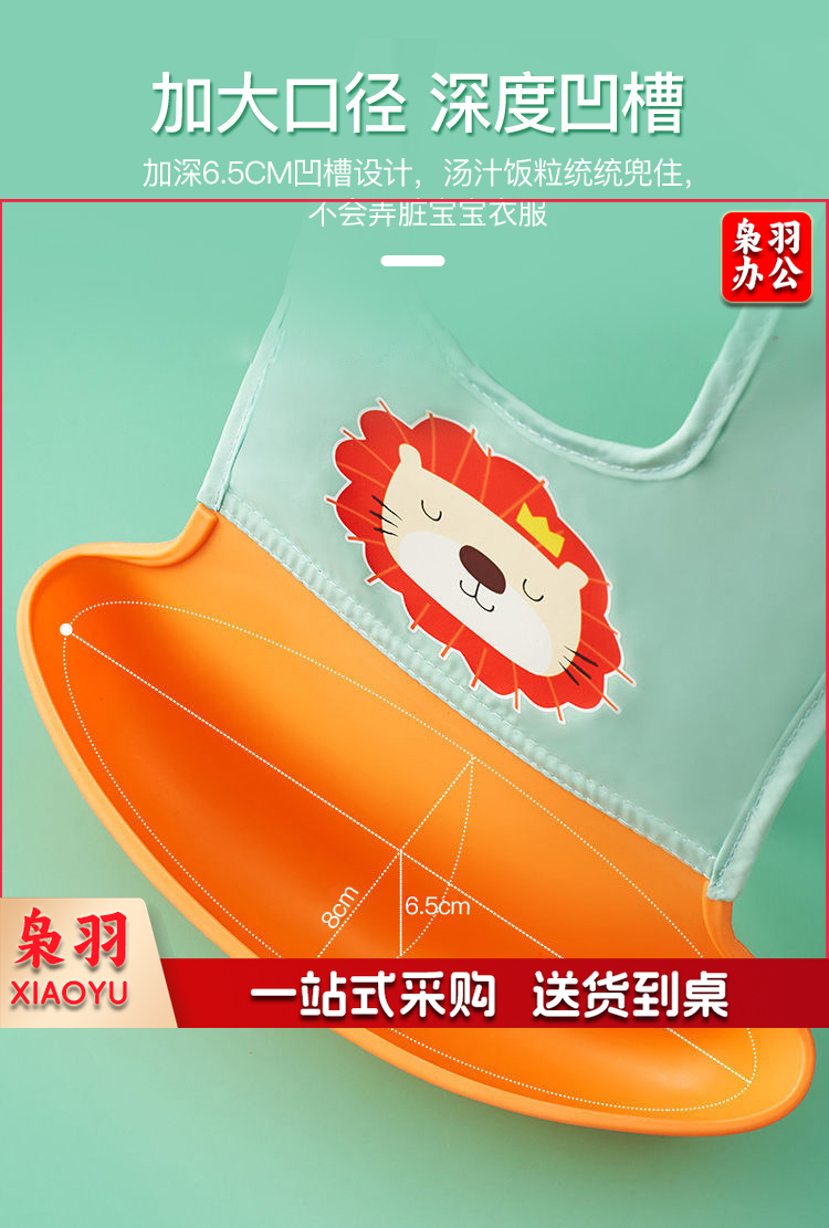 宝宝围兜婴儿硅胶吃饭兜防水围嘴吐奶儿童罩衣 绿色狮子+收纳盒