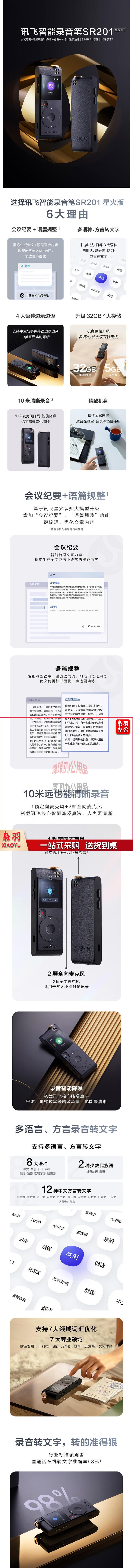 科大讯飞智能录音笔SR-201 免费转写 触摸屏融合按键操作 专业降噪 32G+云储存 星空灰