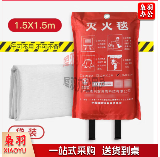 消防毯灭火毯披风防火毯玻璃纤维 家庭厨房工厂汽车用消防认证救生毯逃生毯 1.5x1.5米
