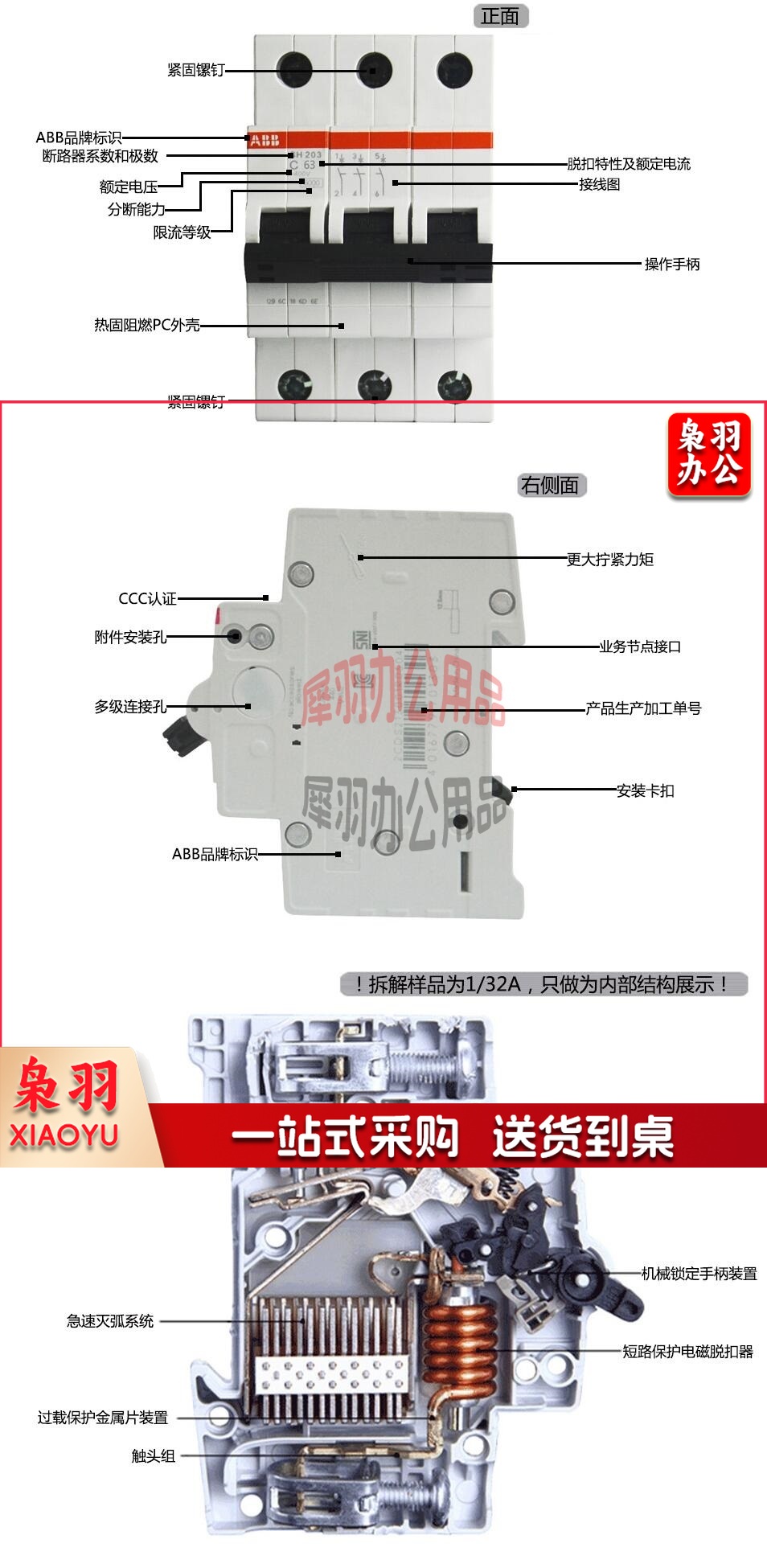 ABB 断路器SH200系列 3P 32A 断路器 电闸