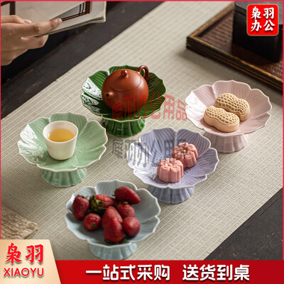中式复古陶瓷高脚果盘 高脚款莲花小盘
