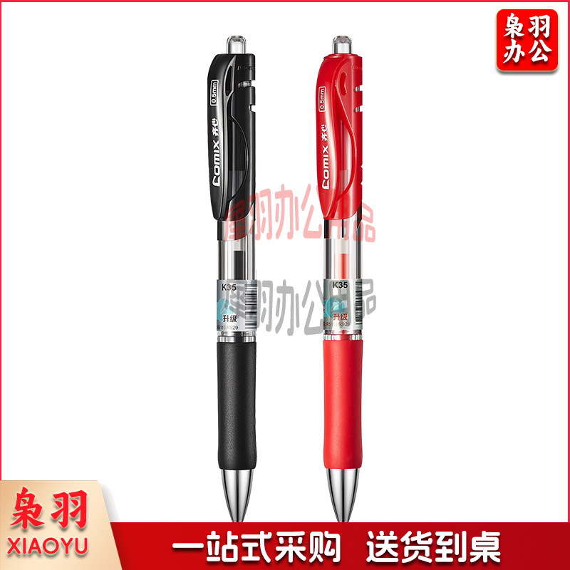 齐心 K35 舒写按动中性笔0.5mm 匹配笔芯R929(黑 红2色颜色备注)