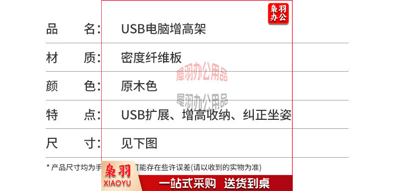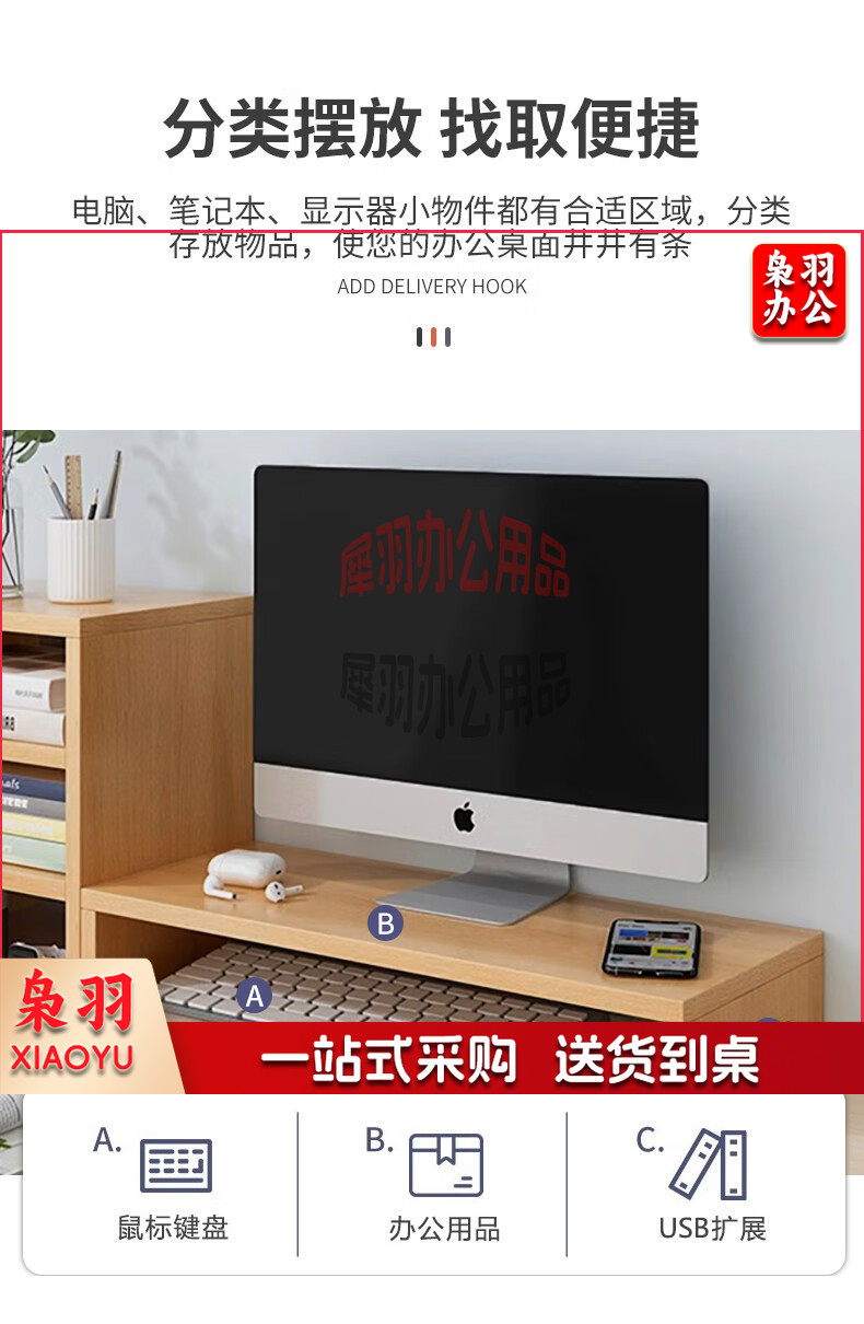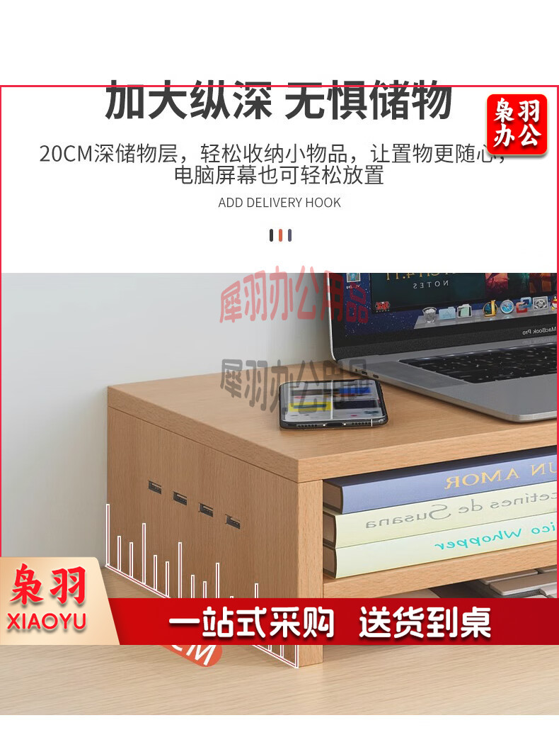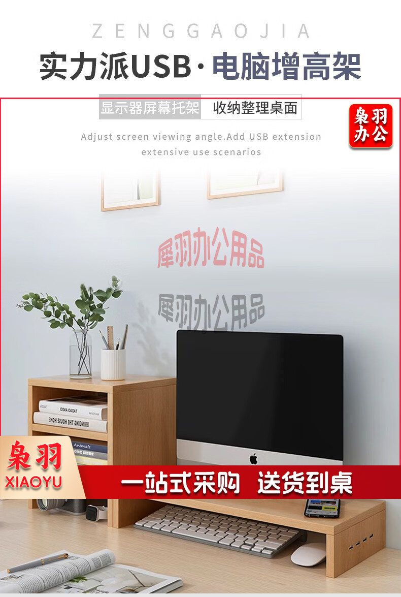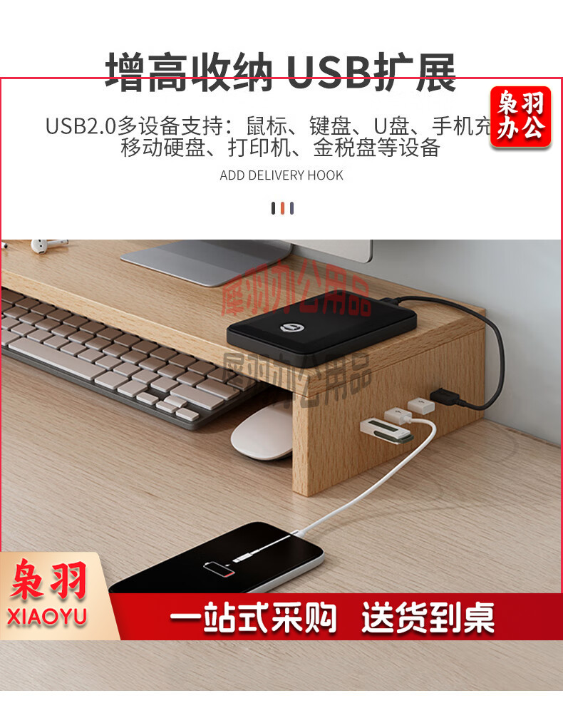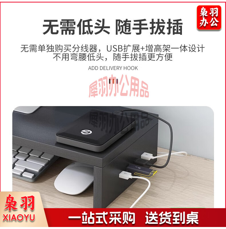 电脑增高架单层USB显示器托架垫高底座支架桌面收纳架办公置物架