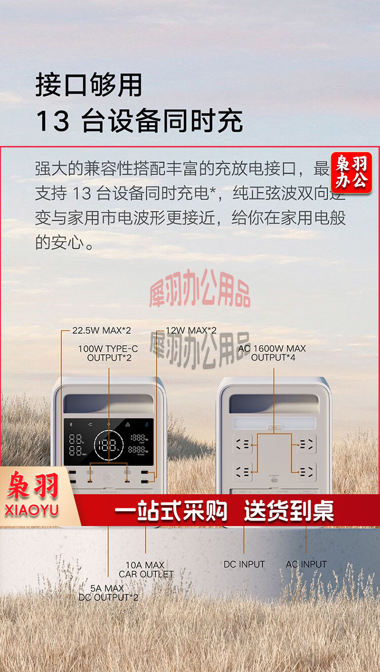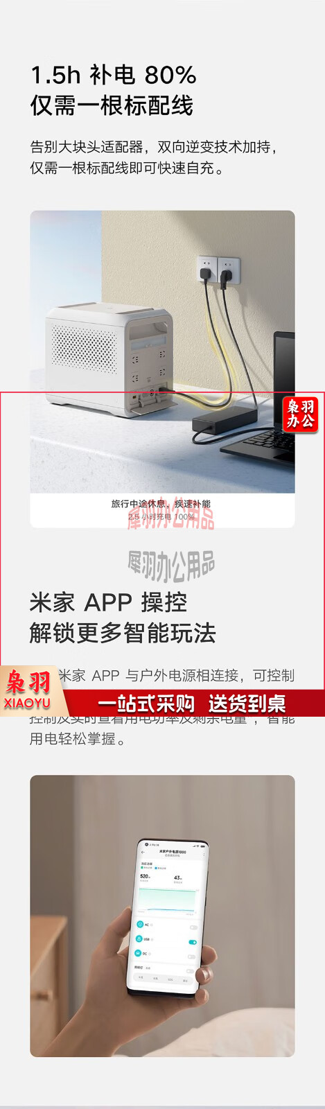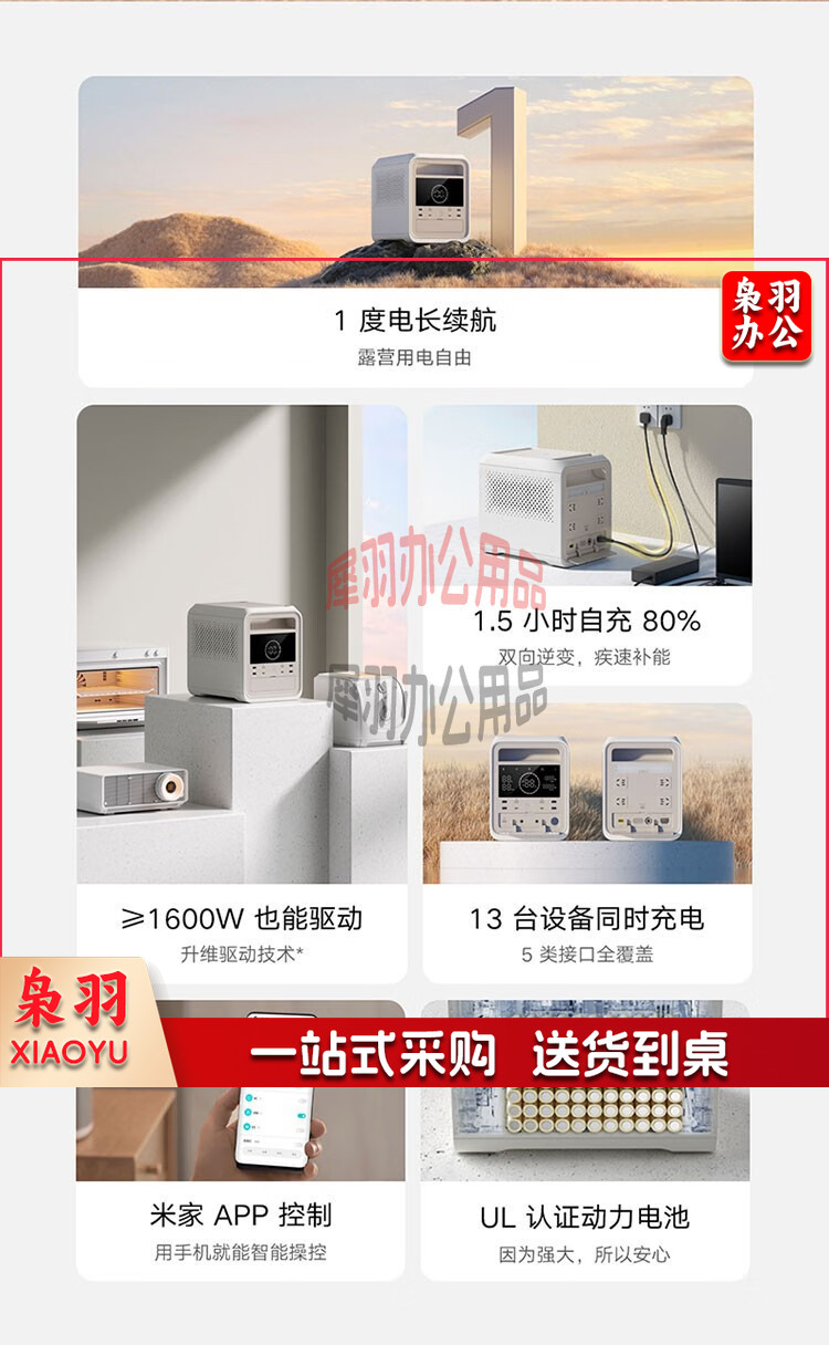 米家小米户外电源1000 超长续航280500mAh大容量 泛光照明灯 独立外壳防护 高低温过充保护 米家户外电源1000