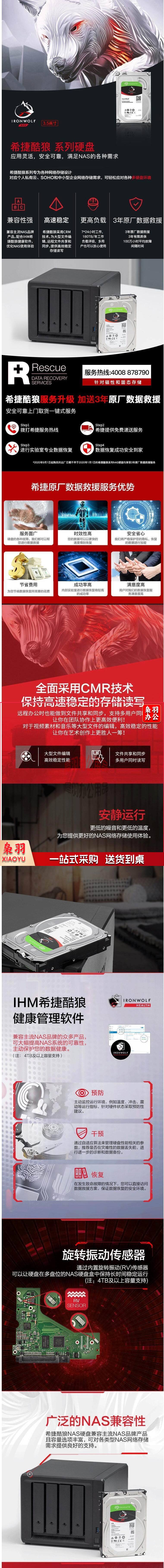 希捷(SEAGATE)8TB 7200rpm【ST8000VN004】 NAS硬盘 PMR CMR垂直磁记录 网络存储 SATA 希捷酷狼 数据恢复