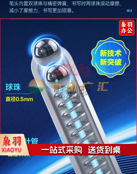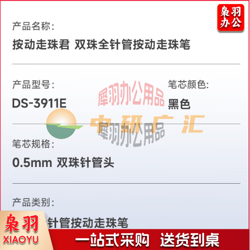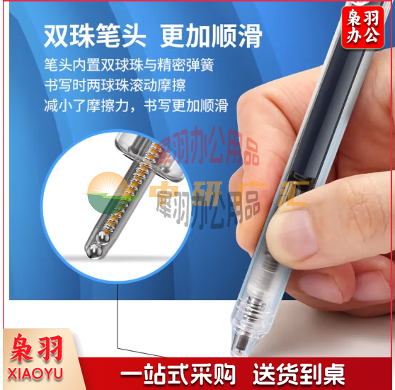点石制笔按动走珠笔双珠全针管0.5mm黑色学生作业刷题笔办公签字笔DS-3911E 4支/套(黑色)