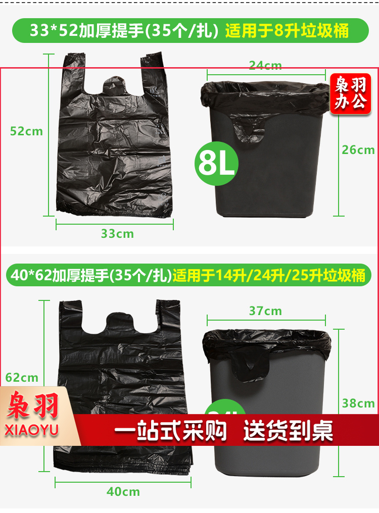 舒蔻垃圾袋Supercloud 家用垃圾袋黑色手提式垃圾袋大号背心式垃圾袋加厚塑料垃圾袋 40*62加厚垃圾袋3.5丝提手垃圾袋(35个)
