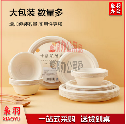 甘蔗浆纸盘纸碗一次性餐具防水防油本色可降解纸碗350ml-40只装
