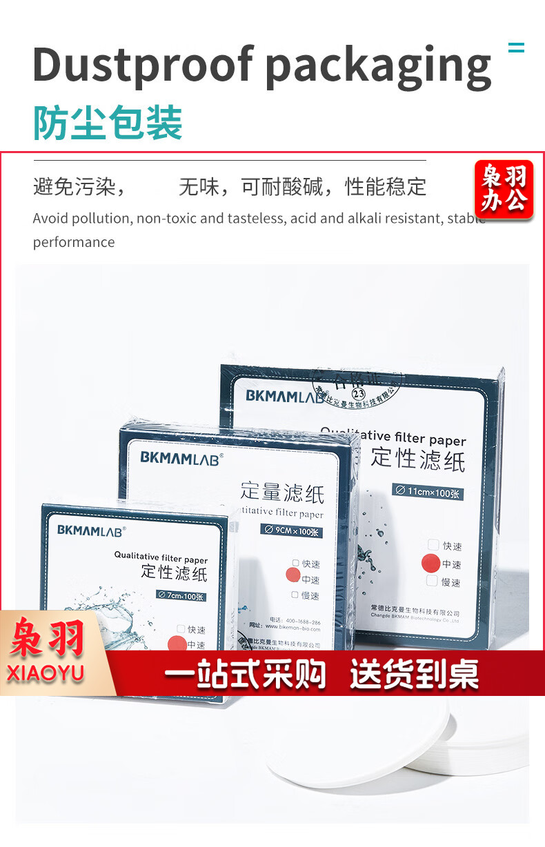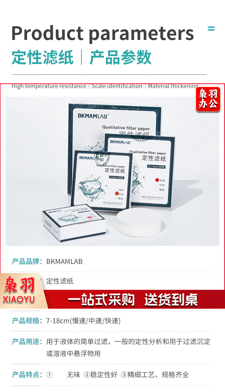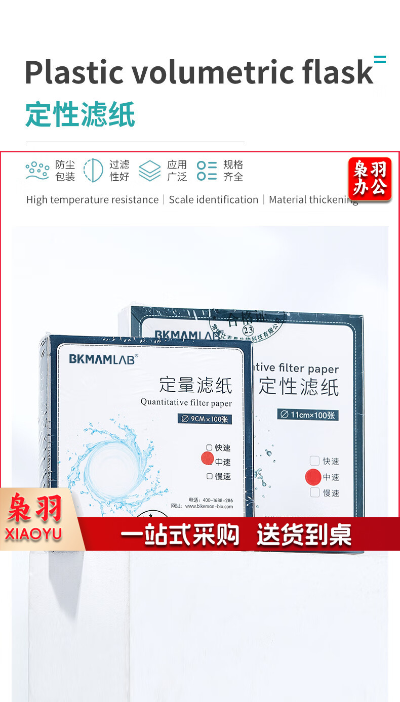 比克曼生物 定性滤纸中速快速慢速圆形过滤纸实验室检测机油滤纸精密双圈棉质纤维化学分析试纸 【15cm快速/中速/慢速】 100张/盒(下单备注类型)