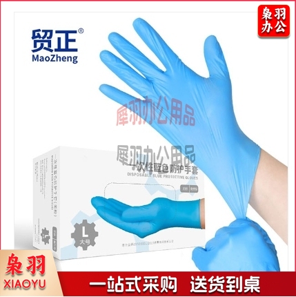 一次性丁腈橡胶乳胶手套 劳保无粉蓝色PVC防滑耐磨工作防护丁晴手套 L码 1000只 MZS-LS100