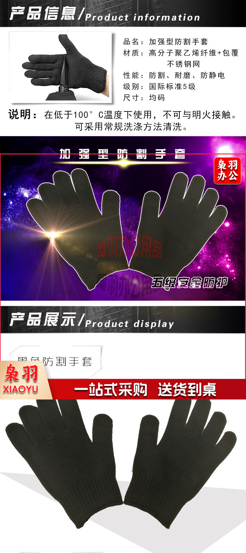 防割手套 食品加工裁剪屠宰肉分割防刀钢丝手套
