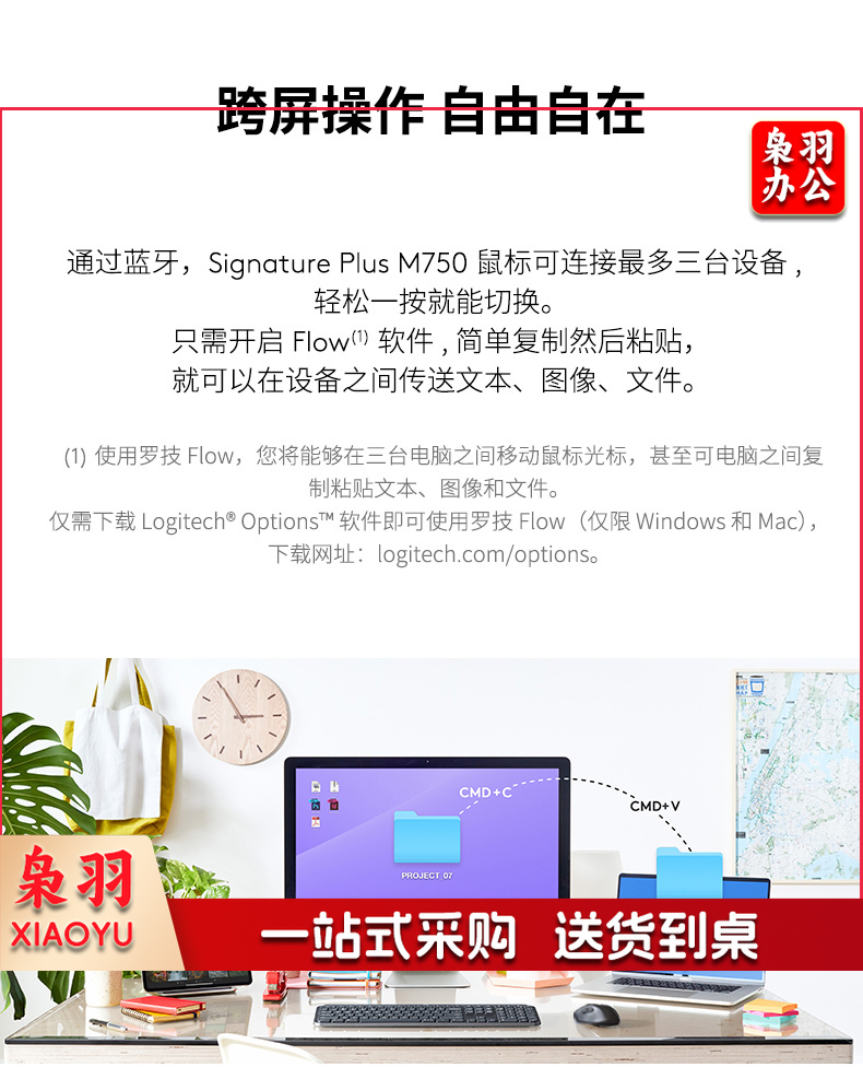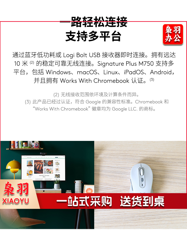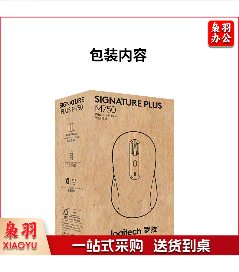 罗技(Logitech)M750 通用版鼠标 无线蓝牙鼠标 对称鼠标 白色 带Logi Bolt USB接收器
