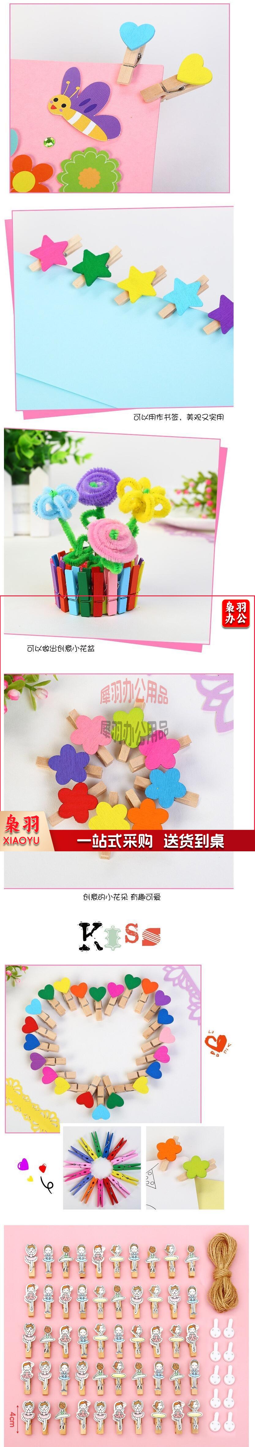 卡通相片夹子 幼儿园手工材料彩色照片木质夹 带麻绳(10个每包)