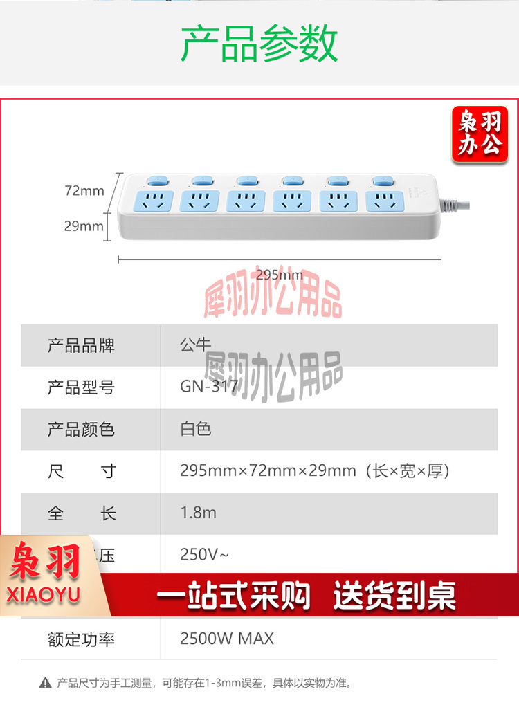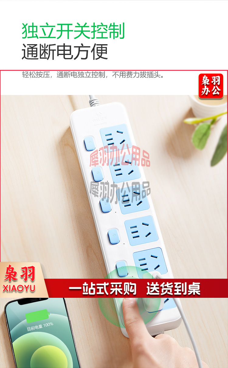 公牛(BULL)新国标插座/插线板/插排6位分控全长1.8米 GN-317