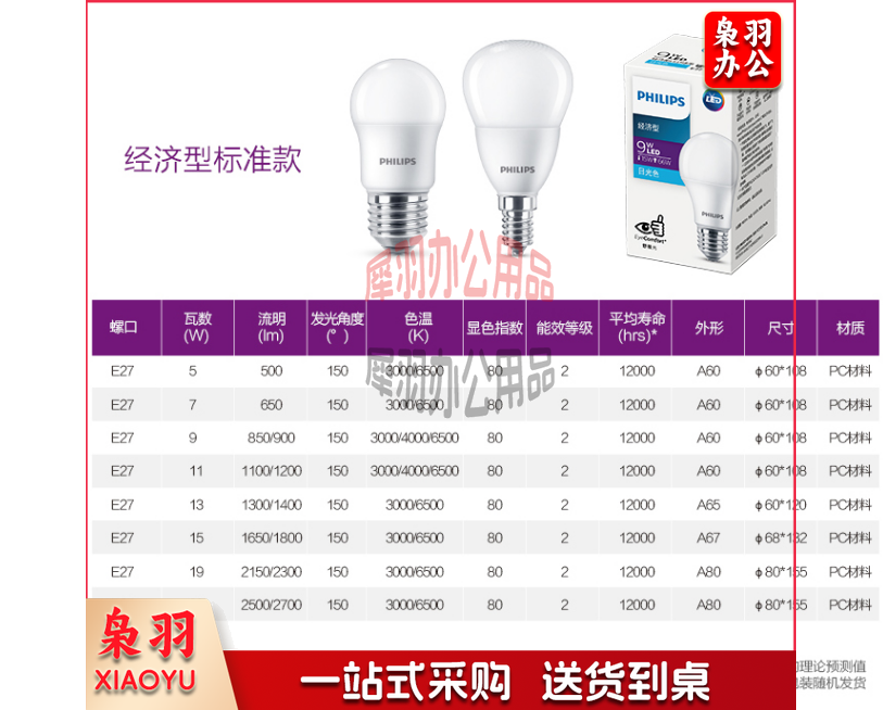 飞利浦 LED灯泡节能球泡灯大螺口E27 经济型灯泡13W