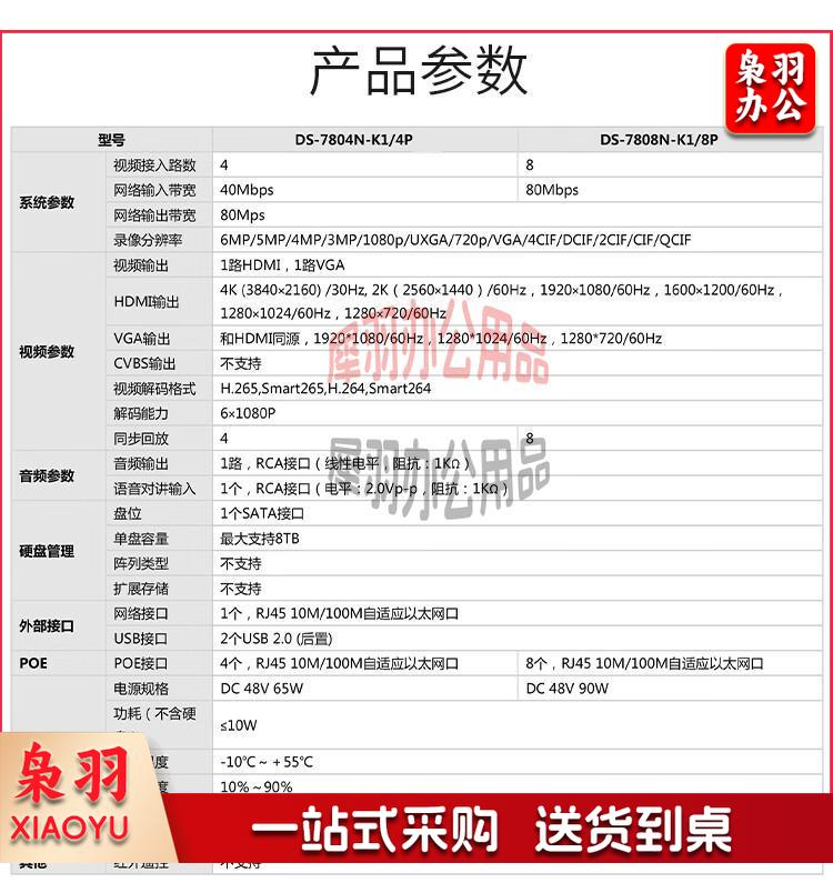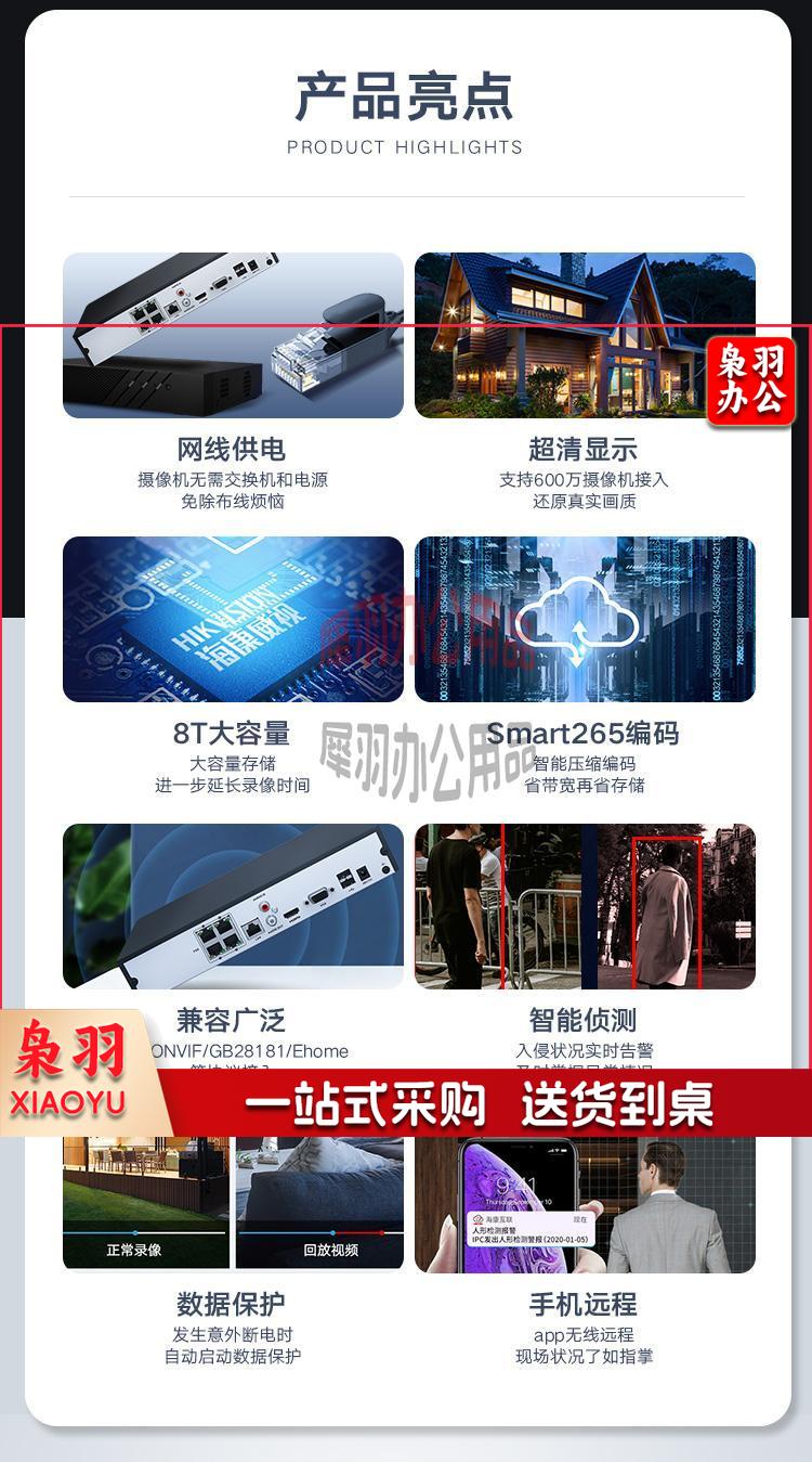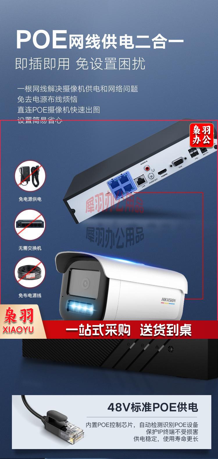 海康威视网络硬盘录像机监控4路POE网线供电NVR