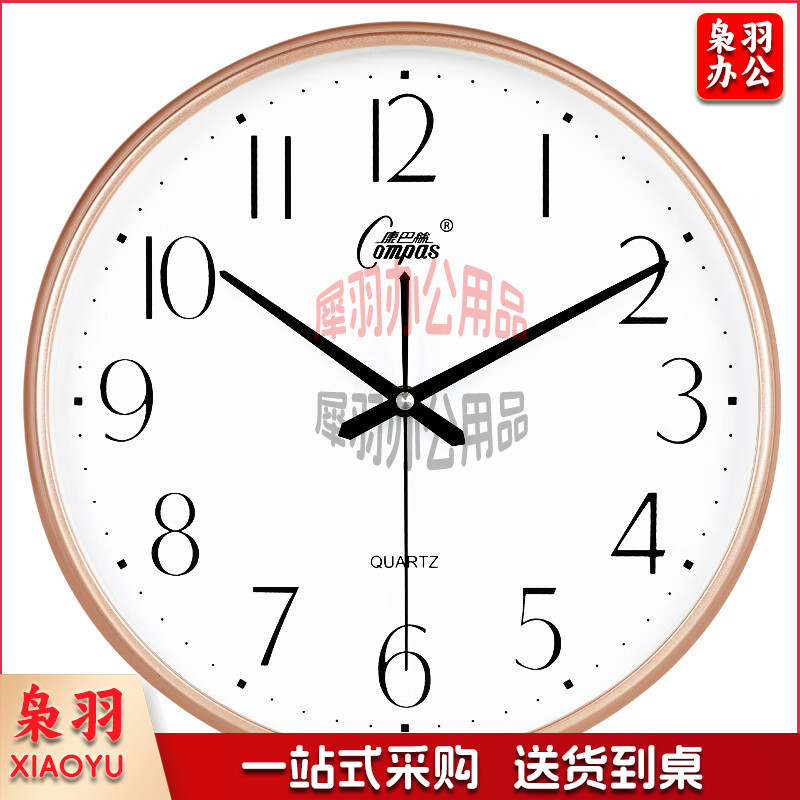 康巴丝-(Compas)挂钟15英寸简约创意钟表客厅时钟卧室石英钟表挂墙C3076 黑白
