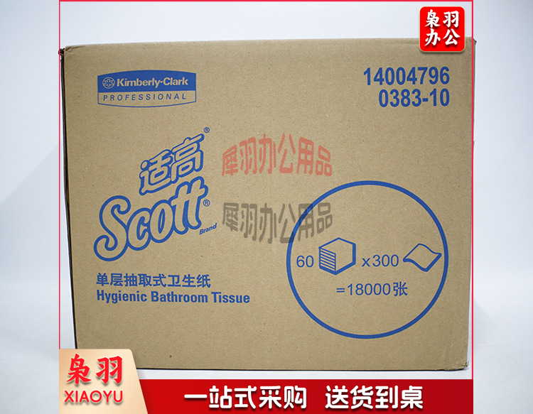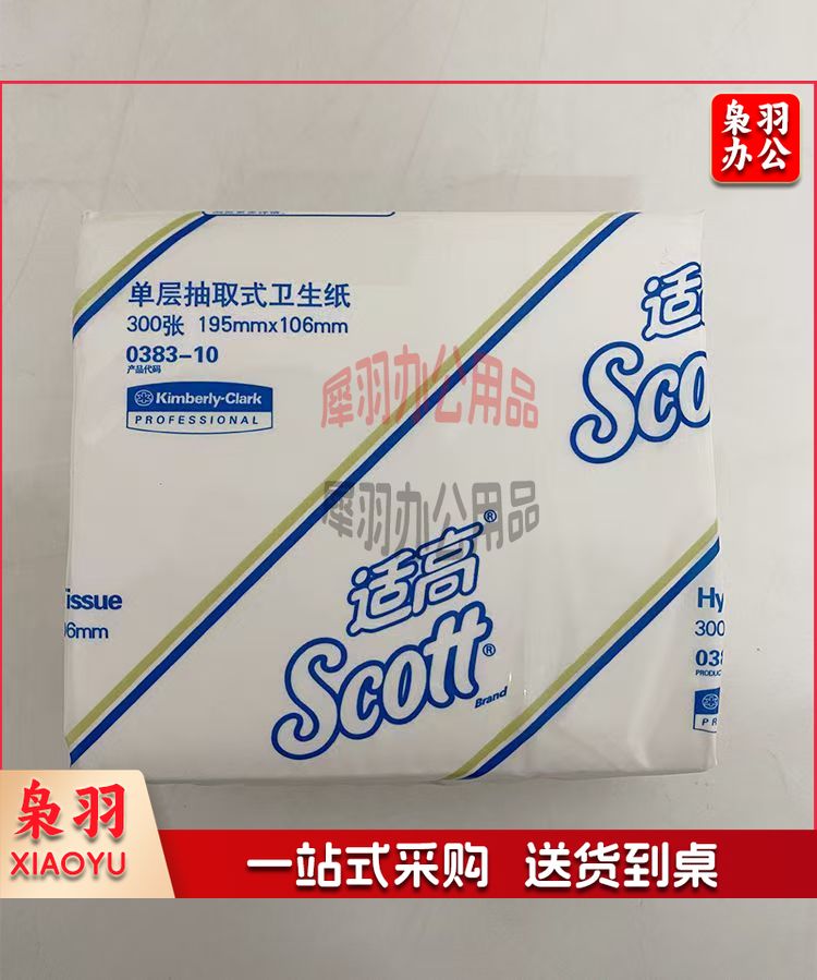 适高 抽纸纸巾 ,每包300张,一箱60包 货号:0383 单层抽取式卫生纸 300张 195mmx106mm 0383-10