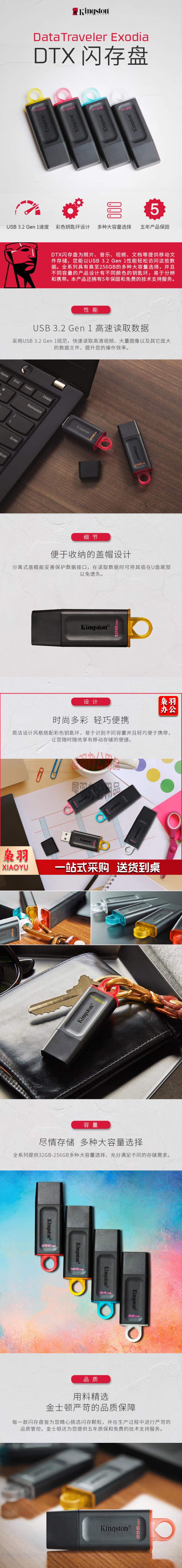 金士顿 64GB USB3.2 Gen 1 U盘 优盘DTX