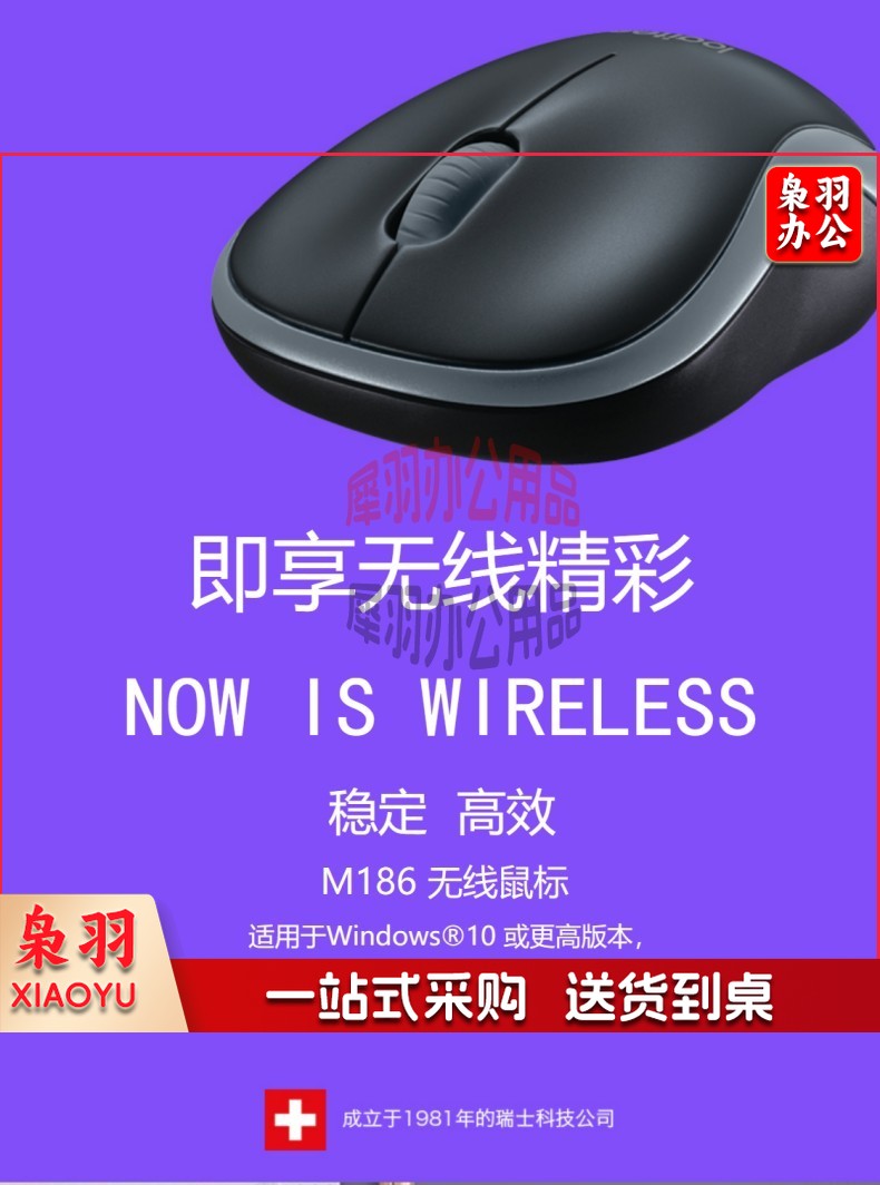 罗技(Logitech)M186 鼠标 无线鼠标 办公鼠标 对称鼠标 黑色灰边 带无线2.4G接收器