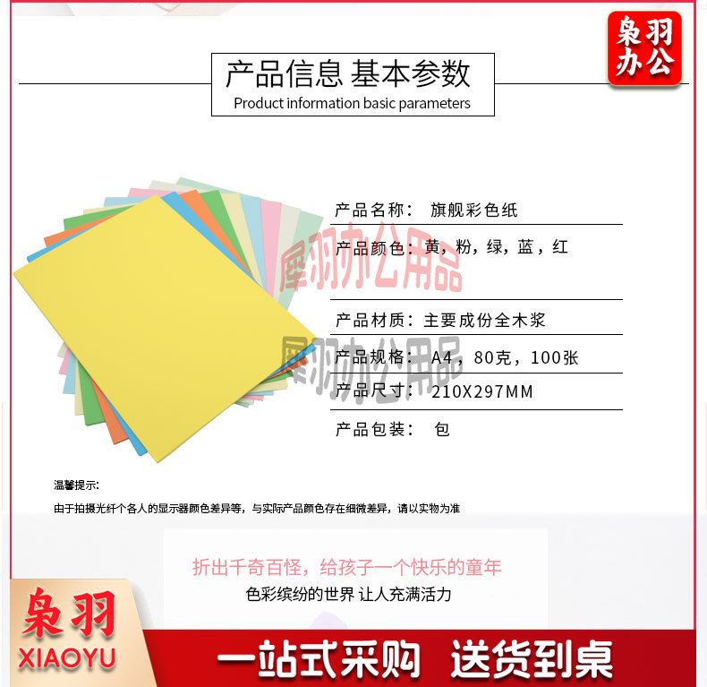 旗舰 A4彩色打印纸80G 100页/包 下单备注颜色