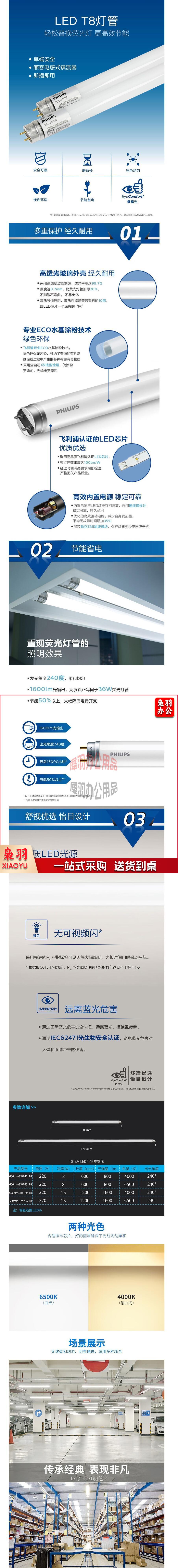 飞利浦 LED T8 双端进电灯管 8W 600mm