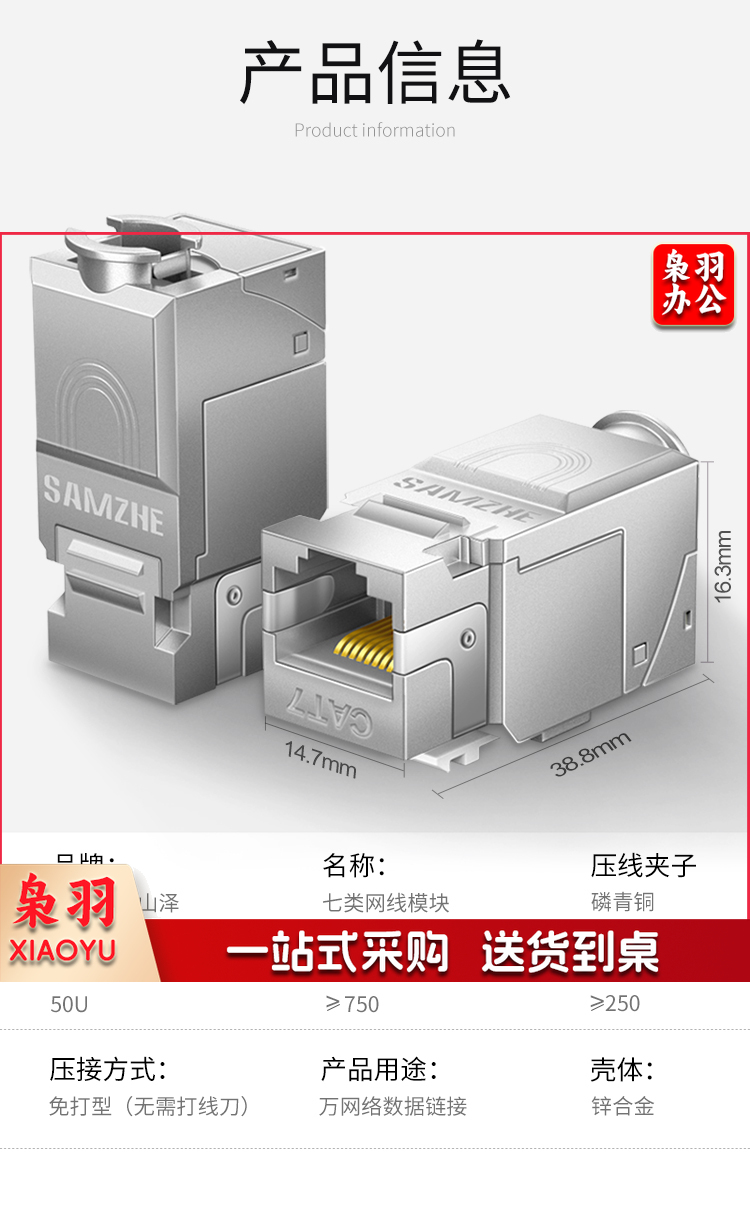 山泽(SAMZHE)七类网络模块 CAT7网线插座面板屏蔽免打模块 RJ45水晶头母座电脑网线连接头 锌合金款 MK007