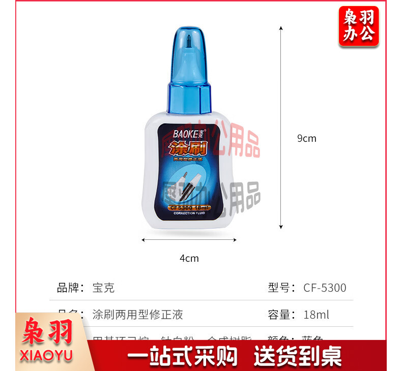 宝克(BAOKE)CF5300环保修正液 学生涂改液 改正液 涂刷两用型 学习 办公 用品 文具 18ml/瓶 颜色随机