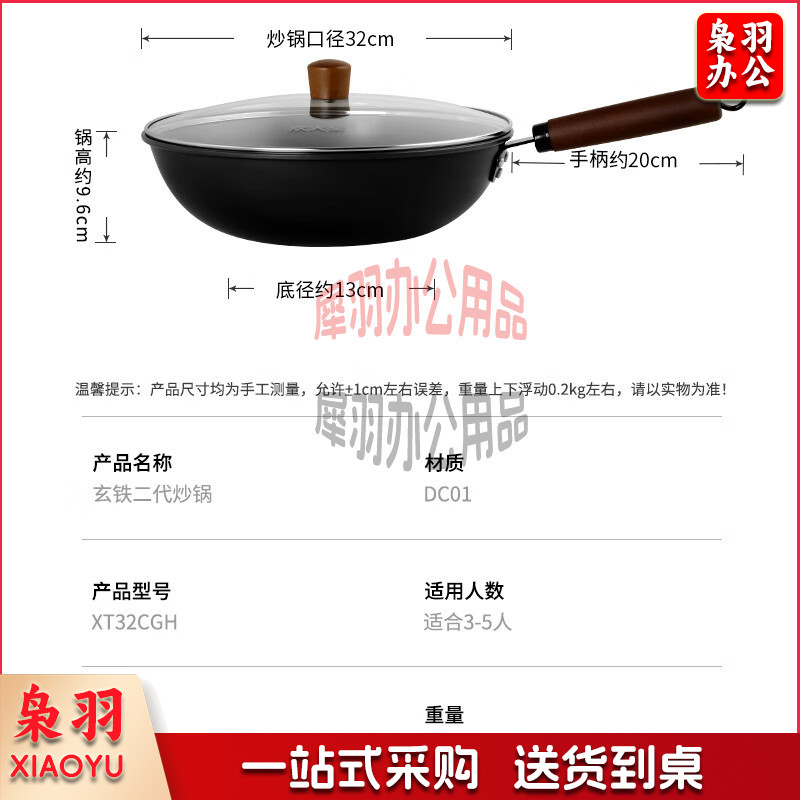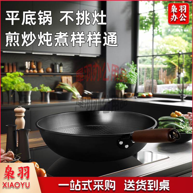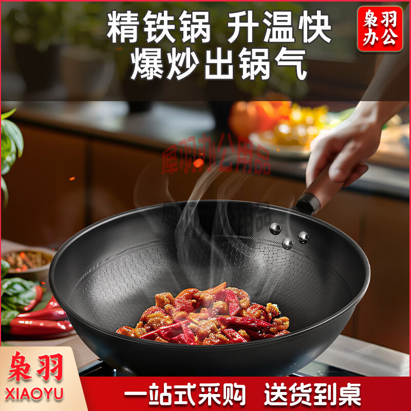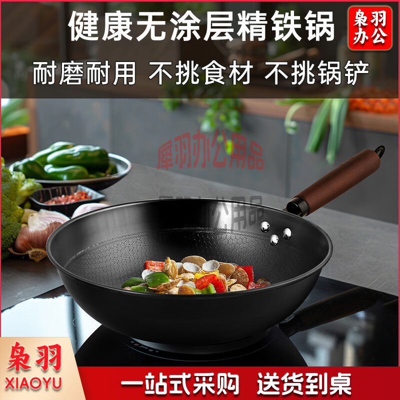 炊大皇 炒锅铁锅 健康无涂层蜂窝纹平底煎锅32cm 炒菜锅玄铁XT32CGH