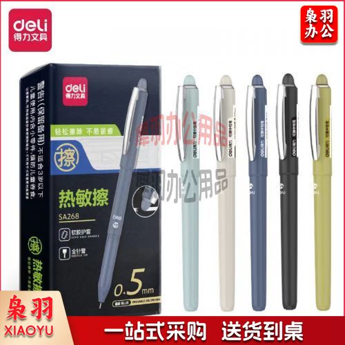 得力热敏擦中性笔小学生0.5mm全针管可擦笔黑色晶蓝笔芯水笔SA268
