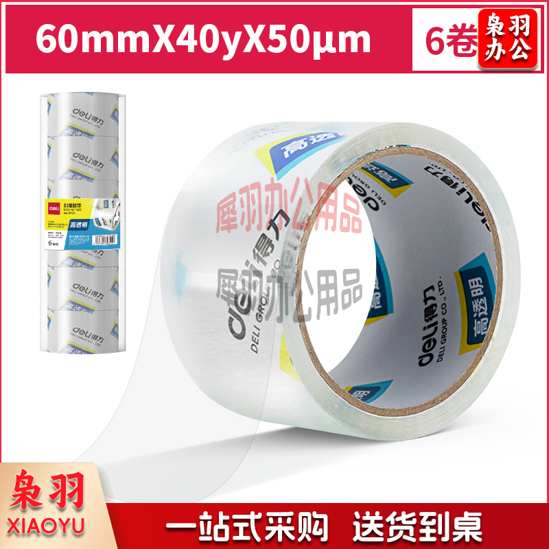 得力 30321 封箱胶带60mm*40y*50um 单卷 (6卷/筒) 单位:卷