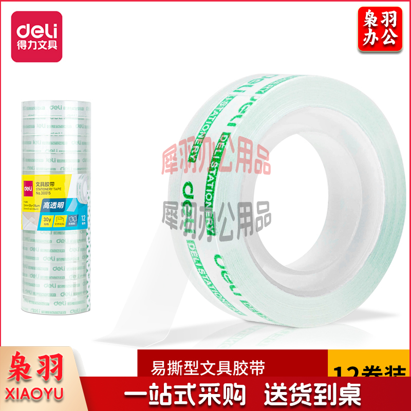 得力30015易撕型文具胶带12mm*30y*38um(高透)(12卷/筒)