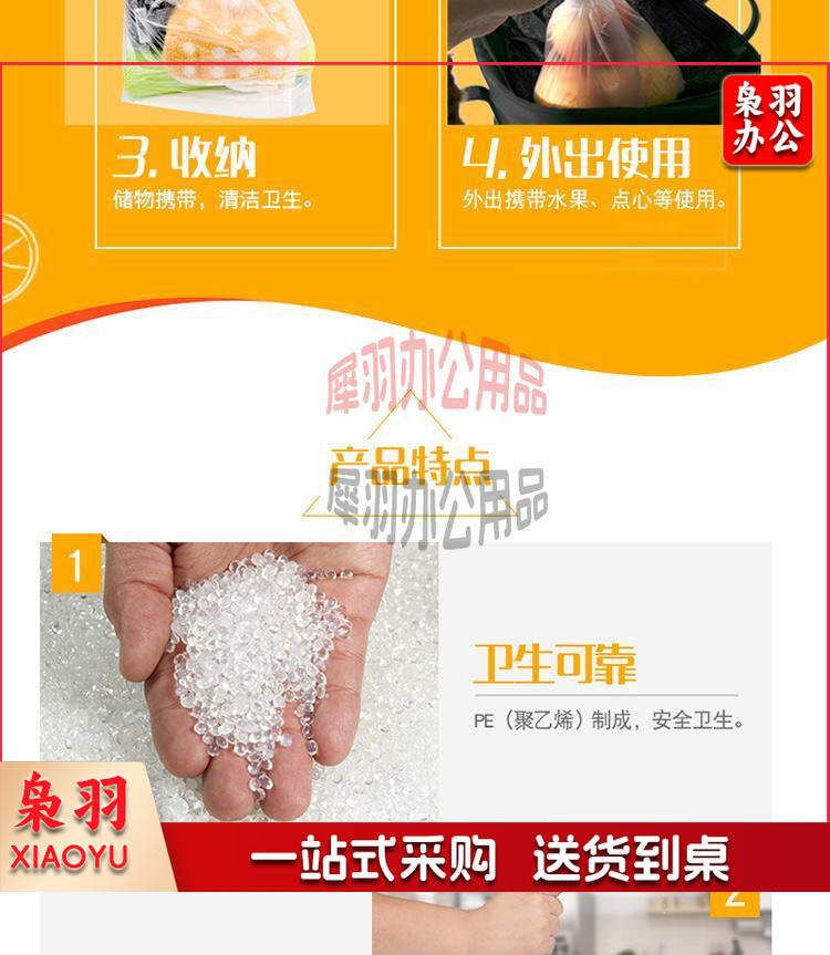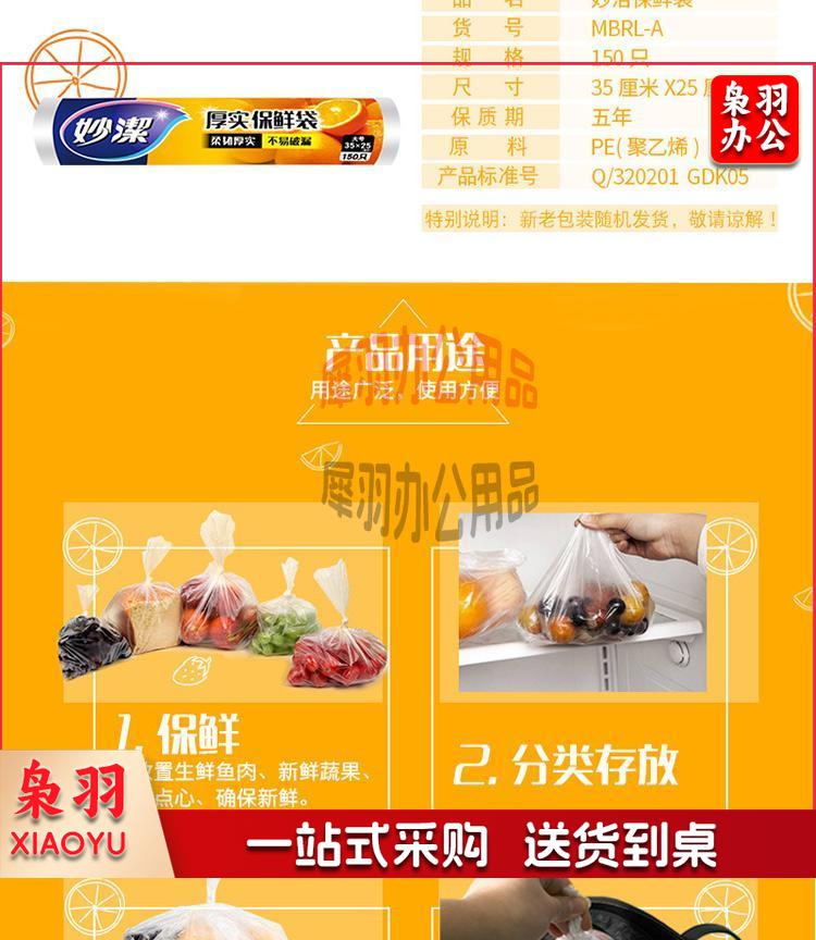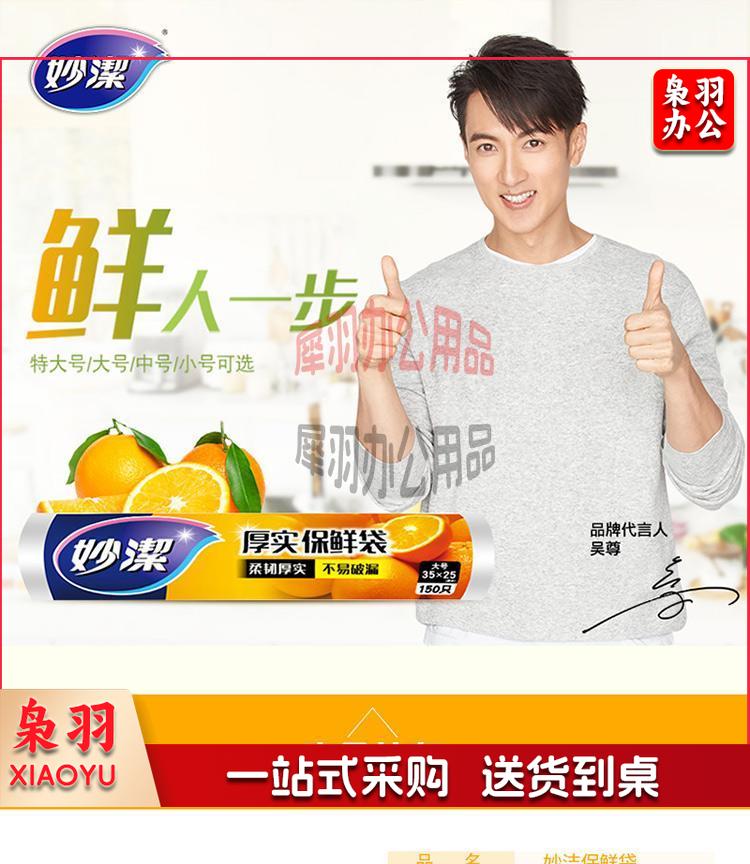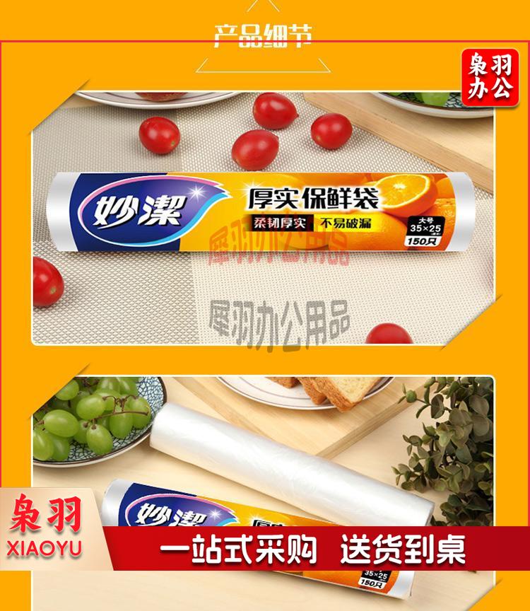 妙洁大号保鲜袋150只 加厚实塑料食品袋子 5卷起订