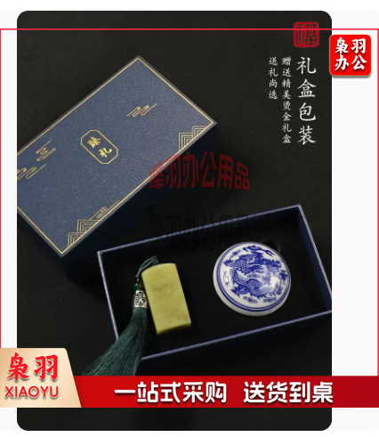 印章套装 青田石印章及青花瓷印泥礼盒 可定制 具体定制内容联系客服