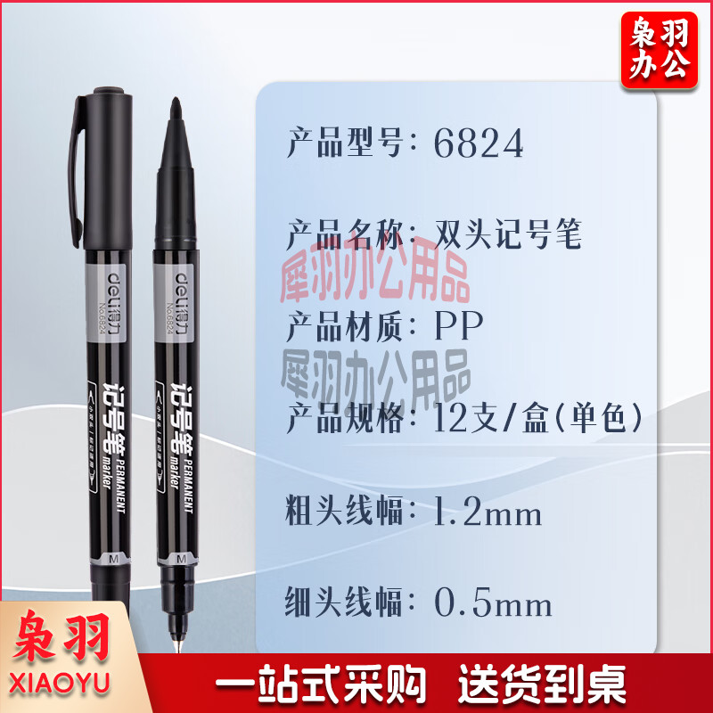 得力(Deli)6824 小双头多用记号笔 2mm/1mm 12支/盒 黑色