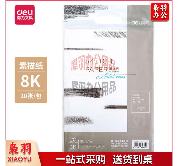 得力(deli)73607 8K素描纸 110g素描本绘画纸彩铅画 美术写生手绘临摹学生用初学者速写铅画纸(20张)