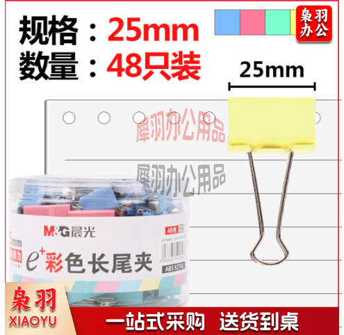 晨光(M&G)ABS92741 25mm彩色长尾夹 金属票据夹 Eplus系列办公燕尾夹 48只/罐
