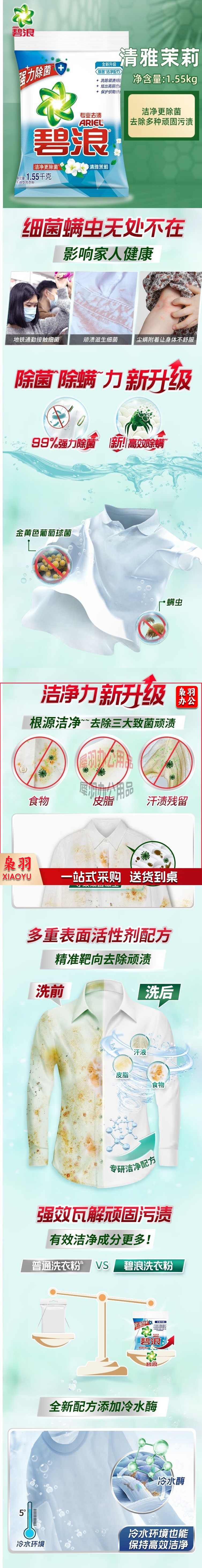 碧浪 洗衣粉清雅洗衣粉茉莉洗衣粉1.55kg无磷洗衣粉洗衣粉机洗衣粉洗手洗去渍去污去油洗衣粉深层洁净洗衣粉家庭装