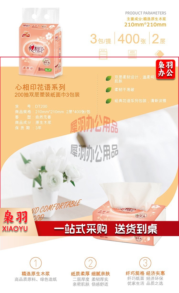 心相印 抽纸2层200抽经典系列面巾纸大包加宽加大规格大码餐巾纸DT200 大幅抽纸(2层*200抽) 210*210 yykj-230406140029