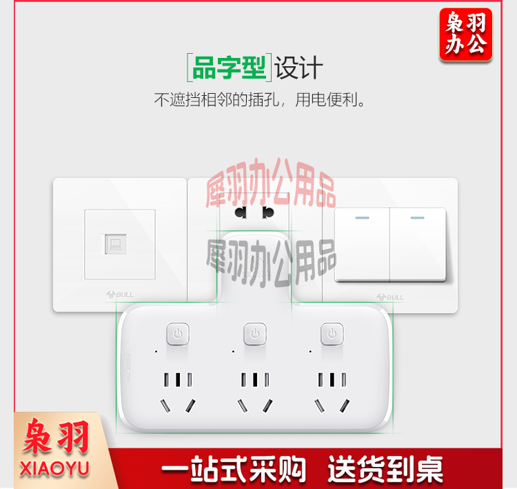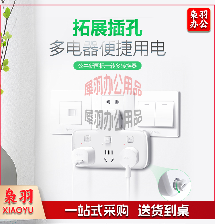 公牛(BULL)转换插头/品字形一转三插座/无线转换插座/电源转换器 适用卧室、厨房 3位分控插座 GN-96033 hysm-230512090102
