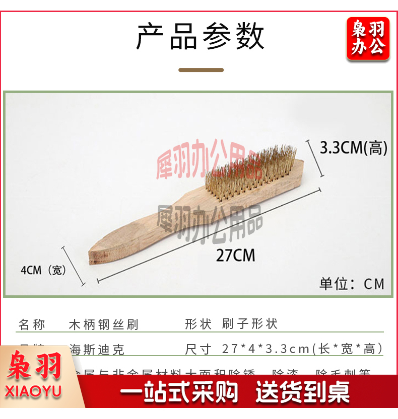 海斯迪克 HKY-80 木柄钢丝刷 清洁抛光不锈钢丝刷 除铁锈手持钢丝刷 1把 twkj-240311175635