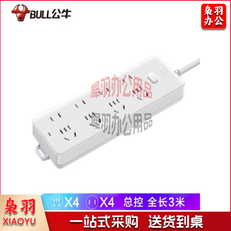 公牛(BULL)新国标插座 插线板/插排/排插/接线板/拖线板 8位总控全长3米 GN-403