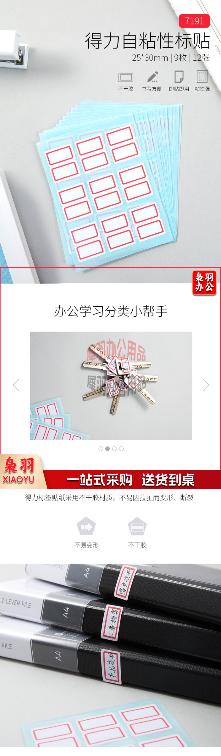 得力7191自粘性标贴 25*30mm 不干胶粘贴纸标签 红色边12张/包