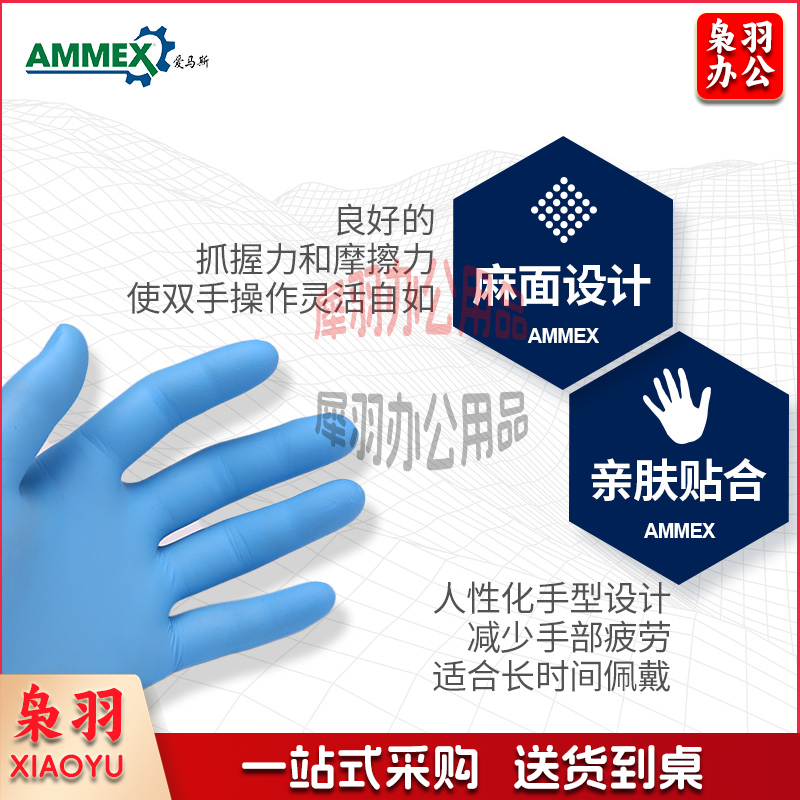 爱马斯 APFNCMD44100 一次性耐用型蓝色丁腈手套 无粉 麻面 非灭菌 M 按盒销售 4盒起订