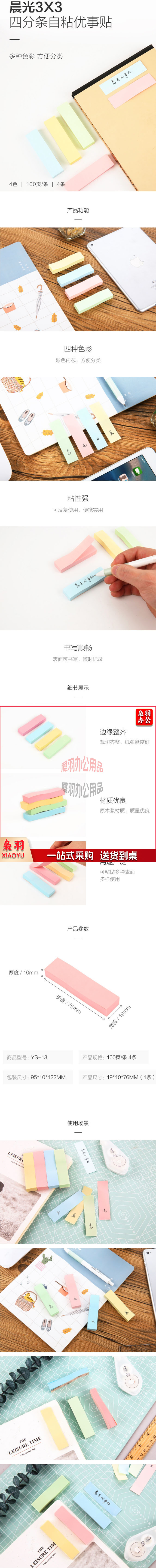 晨光YS-13 100页4色便利贴 粘性标签贴姓名贴 记事留言贴优事贴便签本子 4条装