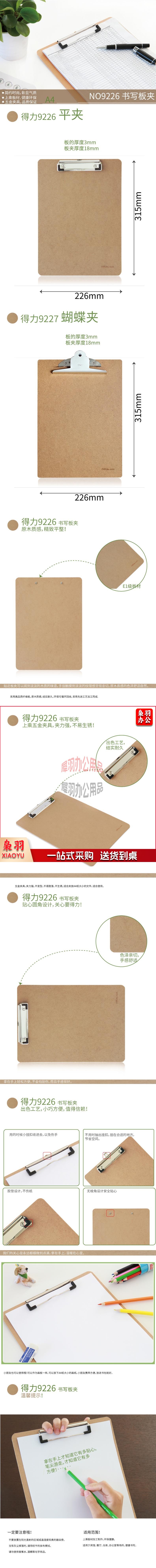 得力9226 书写木质平夹板夹 A 4写字垫板 木质文件夹板夹 五金夹具签字夹板