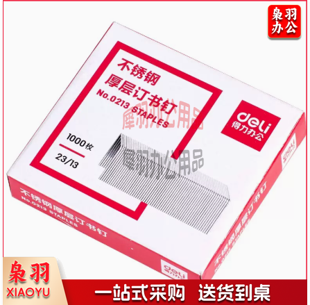 得力(deli)优质厚层订书钉订书针 办公用品 23/13 1000枚/盒 0213