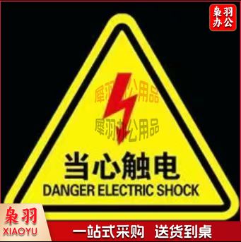 三角当心触电标识贴 安全警示贴10*10cm