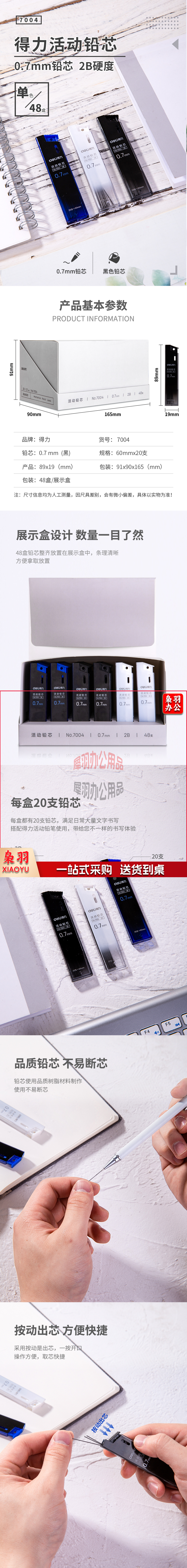 得力(deli)7004自动铅笔笔芯0.7mm 20根/支 (48支/盒 )